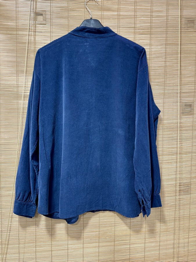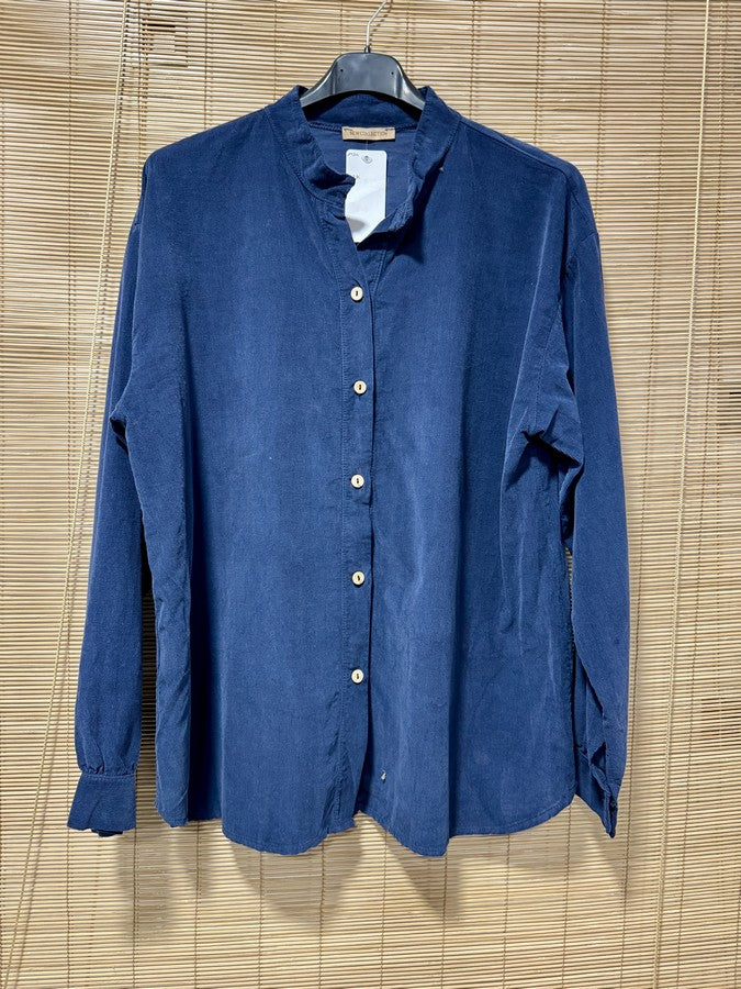 Chemise velours col mao bleu marine