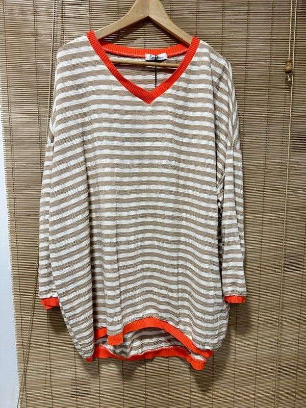 GRANDE TAILLE - Marinière col orange rayures beiges