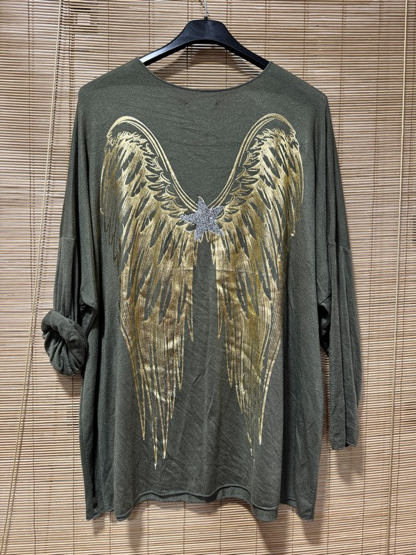 GRANDE TAILLE - Pull fin ailes dorées kaki
