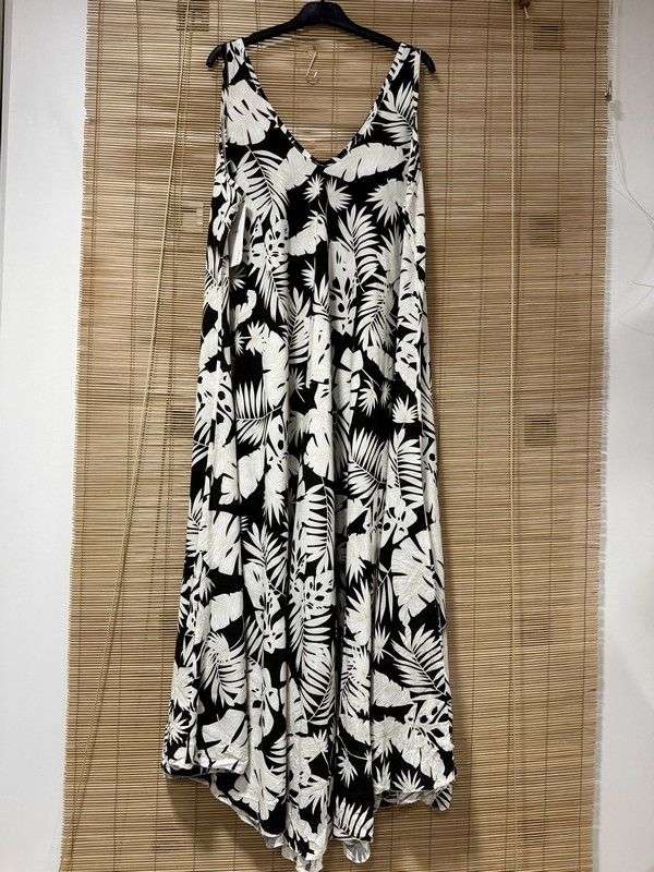 GRANDE TAILLE - Robe longue sans manches palmiers noire