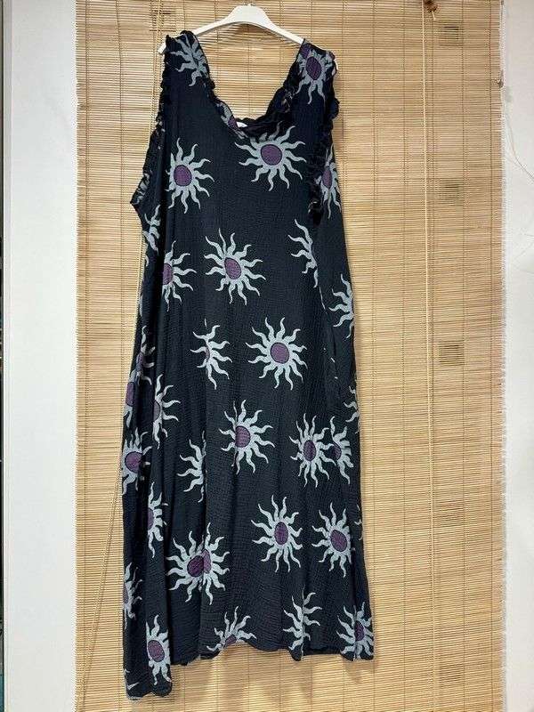GRANDE TAILLE - Robe longue sans manches soleils noire