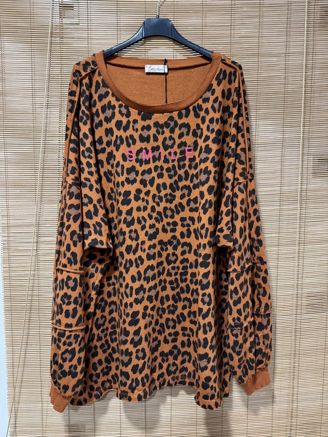 GRANDE TAILLE - Sweat léopard SMILE rouille