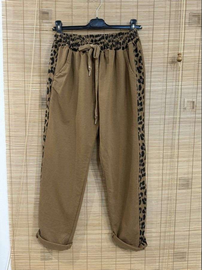 Bandes léopard sur les côtés, taille élastiquée, taille imprimée léopard