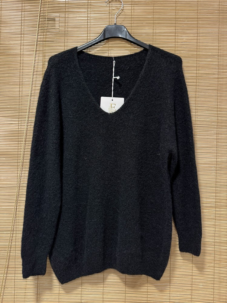 Pull col V CAMILLE noir (alpaga)